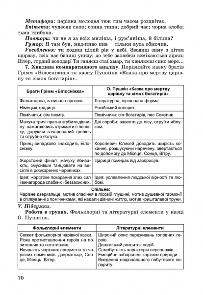 Посібник містить конспекти уроків світової літератури в 5 класі за підручником Є. Волощук "Світова література, 5 клас". Серед них уроки текстуального вивчення творів, позакласного читання, розвитку зв`язного мовлення, оцінювання знань та навчальних досягнень учнів. Матеріали посібника дадуть учителю змогу забезпечити партнерську діяльність учителя і учнів. Запропоновані розробки відповідають сучасним досягненням методичної науки: містять елементи інтерактивних методик, дидактичні ігри, літературознавчі та стилістичні практикуми, системи запитань для проведення евристичних бесід піл час аналізу художніх творів, допоміжні завдання, опорні схеми, таблиці, різнорівневі завдання. Посібник допоможе вчителю створити власні яскраві, неповторні уроки, а також зробить процес залучення учнів до скарбів світової літератури ефективним і творчим.