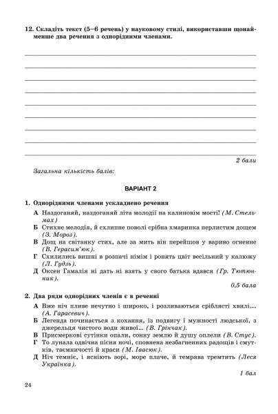 Зошит призначений для проведення усіх контрольних робіт з української мови в 8 класі, виконання яких повністю або частково передбачає письмову форму (тестування, диктанти, аудіювання, читання мовчки, перекази, твір).