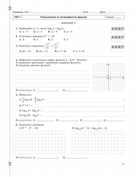 Алгебра, 11 кл. Зошит для самостійних та тематичних контрольних робіт