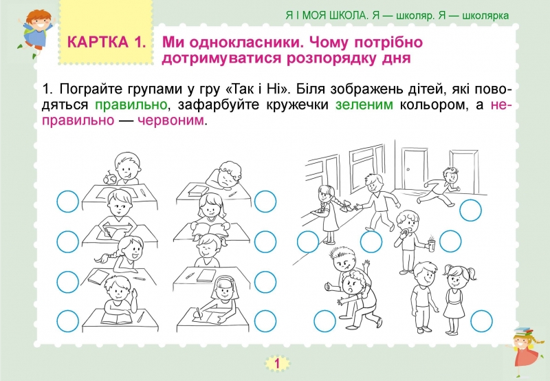 У 1 класі рекомендовано використовувати картки з поясненням найбільш складних завдань, типових помилок, а також способів дій; для формувального оцінювання.